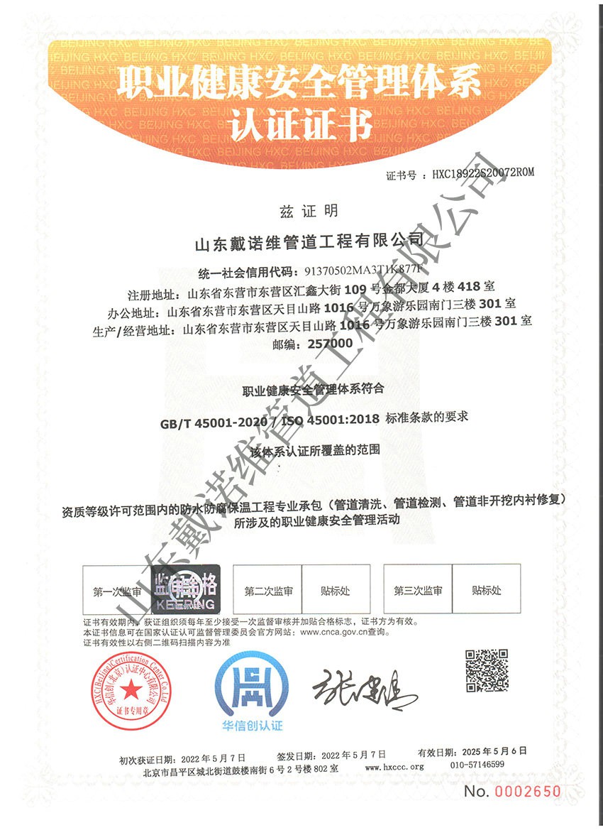 管道非開挖修復(fù)工程服務(wù)企業(yè)資質(zhì)證書